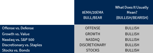 At times, I go about a routine even questioning myself occasionally and this section became one of those spots. Thanks to you Peter, for bringing this back to my attention about what this “Relatively Speaking” section is all about and what its purpose is supposed to be. I’ve updated this with what I consider to be some very important relative relationships, that allow us to compare one thing to another to gauge which is strongest and each pair contributes to understanding the environment for risk-taking. So for example, if stocks are stronger than bonds, it’s a “bullish” piece of evidence for risk-taking. If growth stocks are stronger than value, again, evidence of risk-on type behavior. The five relationships that I’ve shown this month coorborate the story about the current market environment. I hope this makes sense, but by all means don’t ever hesitate to provide feedback and/or call me out on something that just doesn’t seem to be right! Thanks for doing that!