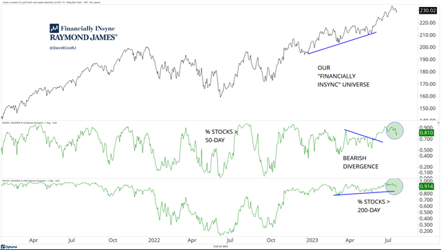 The second chart of our universe shows that the breadth divergence has been cleared up and like the broader markets, we have a very healthy backdrop of stocks > 50-day and > 200-day moving averages.